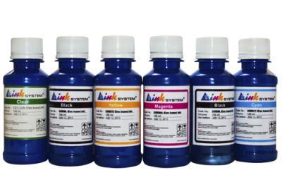 Set of dye-based ink, includes 6 bottles of ink, colors: Black, Black, Cyan, Magenta, Yellow, Clear, capacity of bottles - 100 ml.