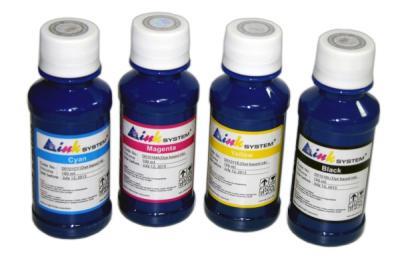Set of dye-based ink, includes 4 bottles of ink, colors: Black, Cyan, Magenta, Yellow, capacity of bottles - 100 ml.