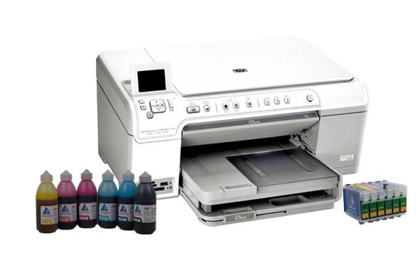 Buy All-in-one HP Photosmart C5383 with refillable cartridges and make 30 times more quality prints for the same money! Pay only 0.04 USD for A-4 full color print!